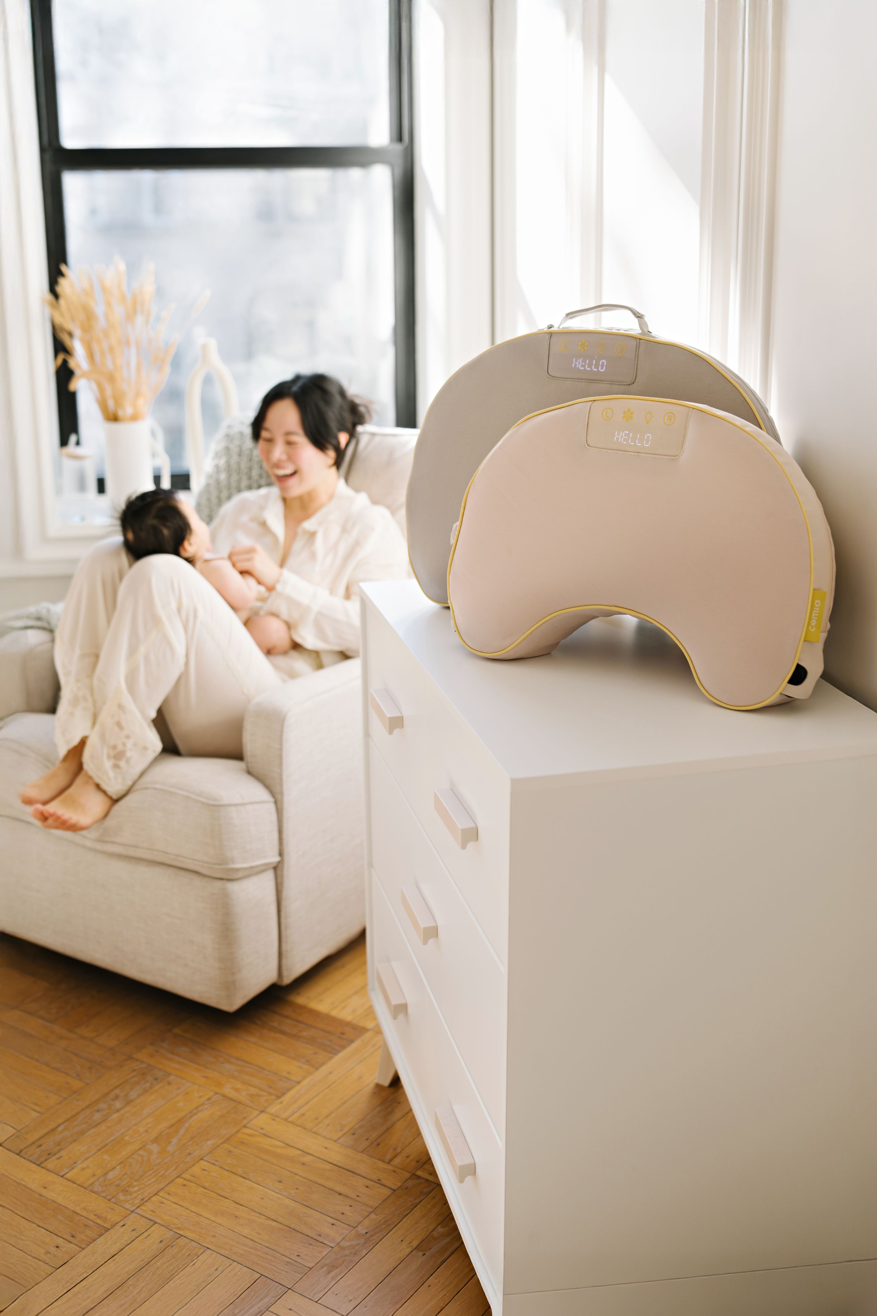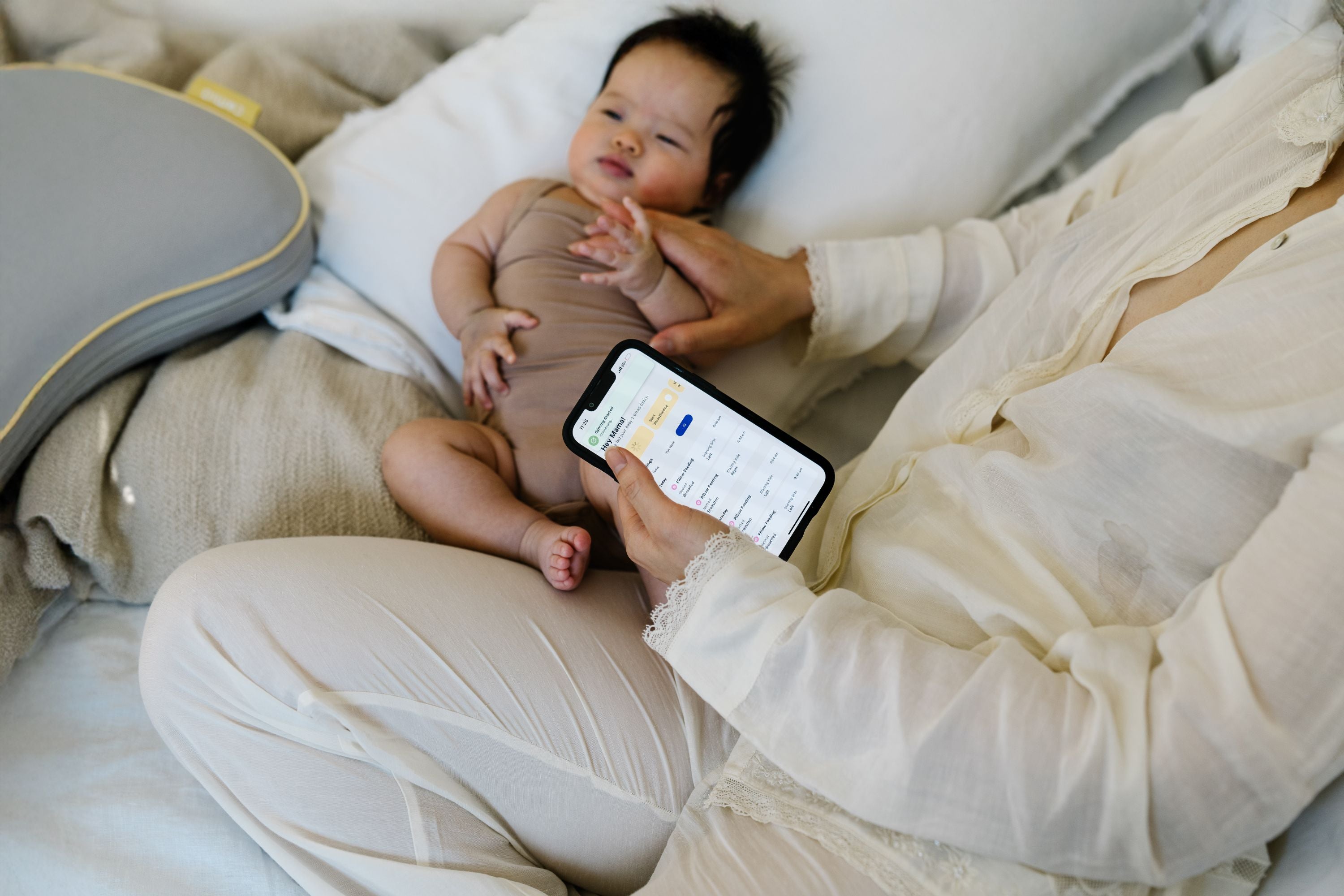 Swipe to Compare between Comia Smartpillow Premium, Comia Smartpillow Lite, and Traditional Nursing Pillows